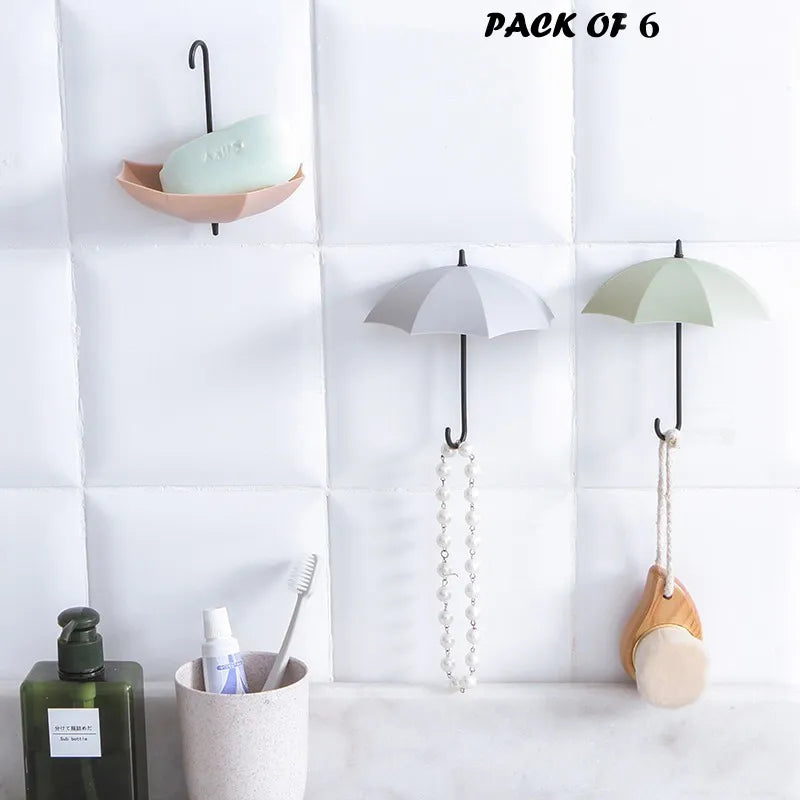 Pack of 6 Umbrella Hook Wall Door Key Hanger Decorative Hooks Random Color Matte Plastic