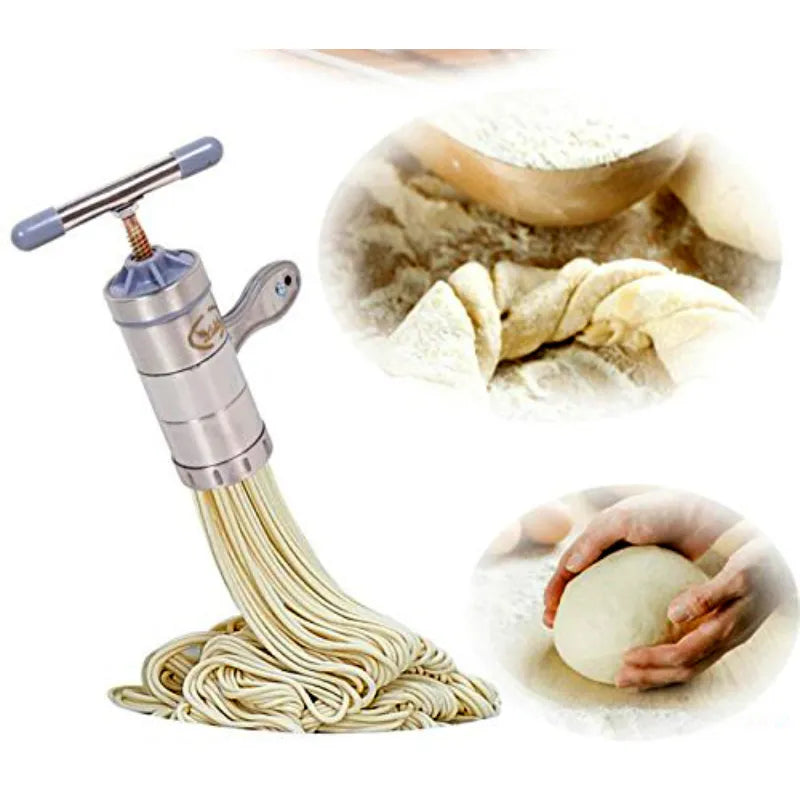 Mini Portable Manual Stainless Steel Pasta Maker Machine with 3 Press Molds