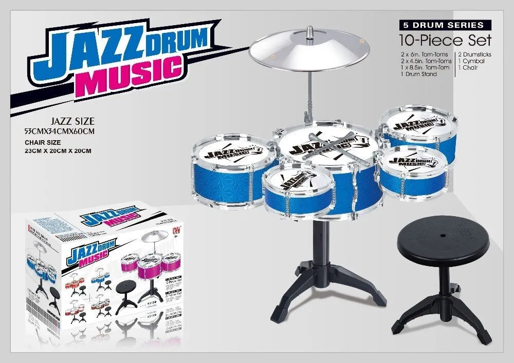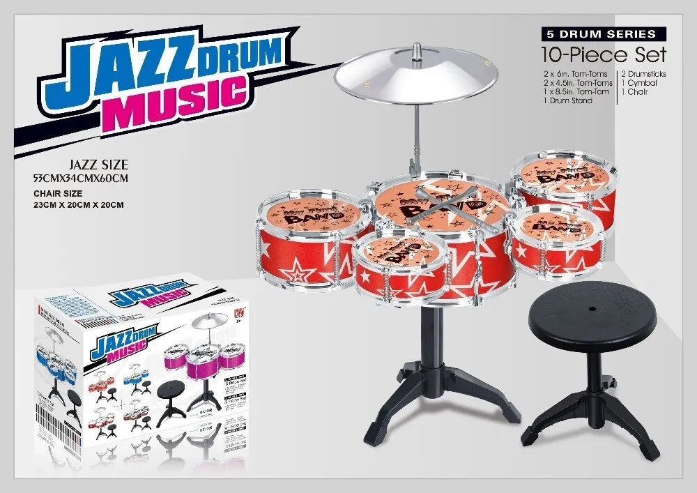 The 10 Piece Jazz Series Drum Set with Chair is the perfect gift for aspiring young musicians, combining fun, education, and durability in one exciting package.