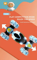 Get ready for insane stunts with the 2.4G High Speed Gesture Sensing Twist Stunt Car! This next-gen RC car features dual control (remote + gesture-sensing watch), one-key deformation (twists and straightens body), 360° rotation, lateral side drift, and four-wheel drive climbing power. Watch it light up with dazzling LEDs and blast music while performing auto-demo shows at the press of a button. Control it traditionally or simply tilt your wrist with the gravity-sensing watch — perfect for kids aged 3+!