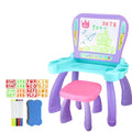2-in-1 Design: Magnetic drawing board and image projector in one compact desk.