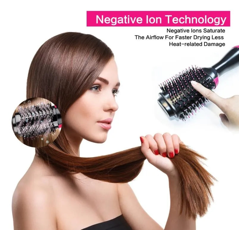 2 In 1 One Step Hair Dryer And Volumizer Brush Tourmaline Ceramic Negative Ion Fast Styling Straightener Curler