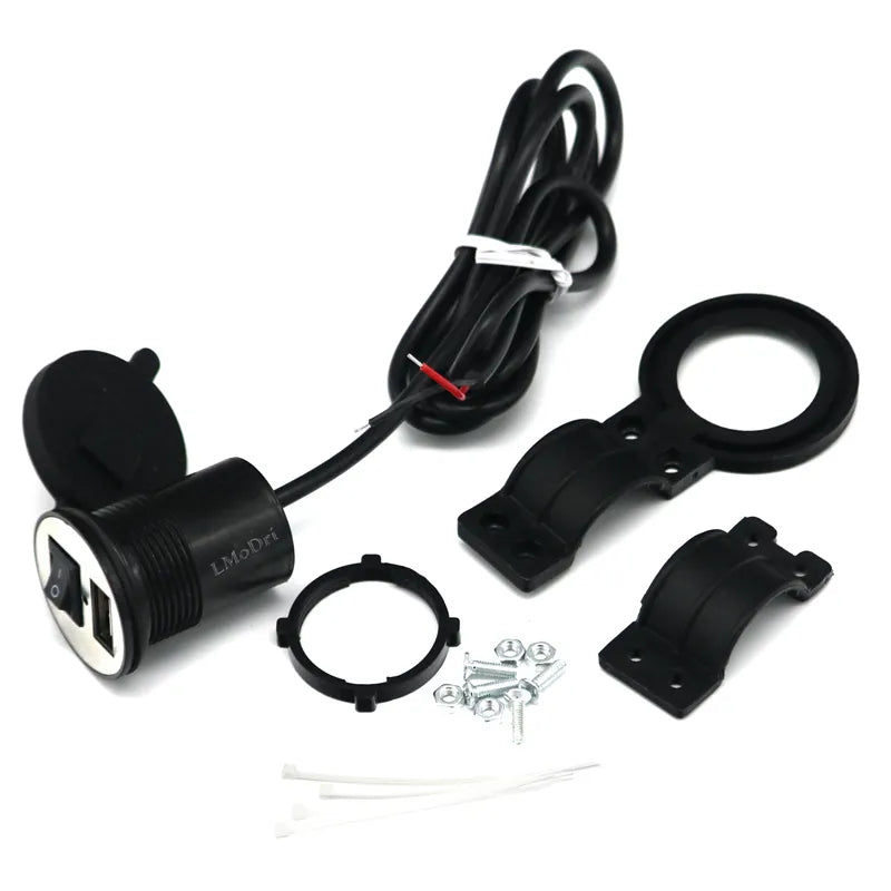 This 2-pack USB charger set is a must-have for motorcyclists and e-bike riders seeking reliable, weather-resistant phone charging on the road.