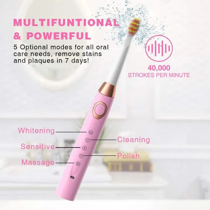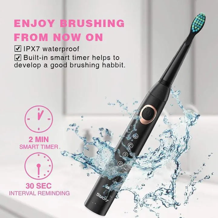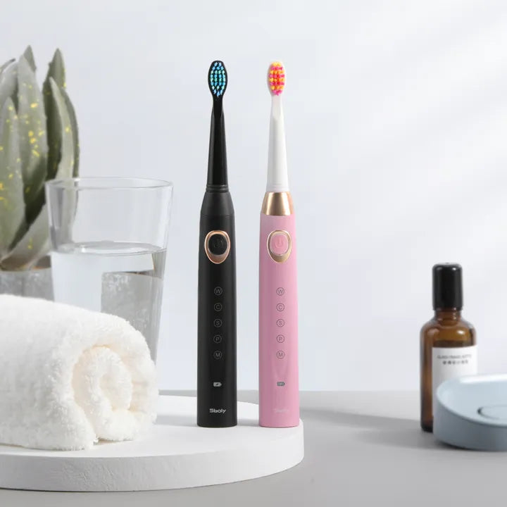 Experience dentist-level cleaning at home with the 2-Piece Sboly Sonic Electric Toothbrush Set in Black and Pink. Powered by advanced sonic technology delivering up to 40000 strokes per minute, these lightweight toothbrushes effectively remove plaque, stains, and bacteria for noticeably whiter and healthier teeth.
