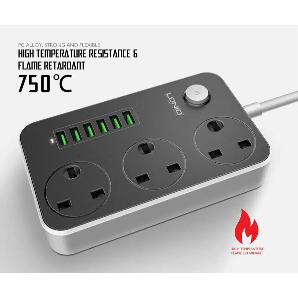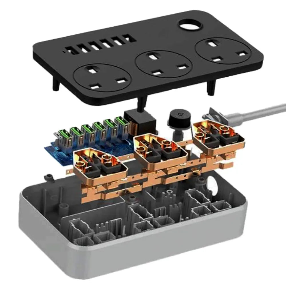 2500W 10A Power Socket Extension with 3 Anti Static AC Sockets and 6 Intelligent USB Charging Ports