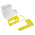 The main compartment accommodates a dishwashing detergent bottle and brush, while an integrated rail provides a convenient hanging space for damp dishcloths to dry. The draining plate within the base allows wet sponges to air out, with a concealed reservoir collecting excess water to keep your countertop dry. Easy to dismantle and dishwasher-safe, this caddy ensures hassle-free cleaning and long-lasting use. Available in vibrant colors (Green, Black, Yellow, Blue, or Gray), it’s a must-have for organized sink storage.