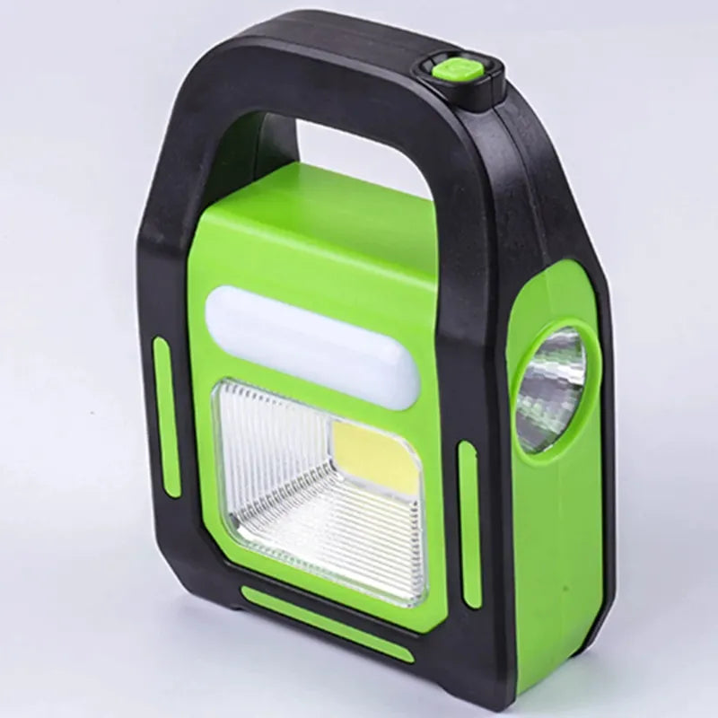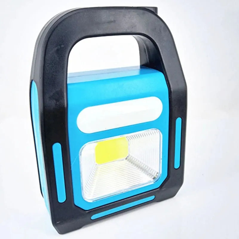 Light up your adventures with the 3-In-1 Solar USB Rechargeable COB LED Camping Lantern — a versatile, multi-functional outdoor essential combining high-brightness lantern, spotlight flashlight, and emergency power bank. Powered by solar panel and USB charging, this IPX4 waterproof light delivers super-bright COB LED illumination in a compact 135 x 58 x 195 mm ABS body. Features 3 lighting modes (headlight, side COB floodlight, red SOS), built-in rechargeable battery, and USB output to charge phones or tablets. Perfect for camping, hiking, emergencies, or home use. Random color selection ensures variety.