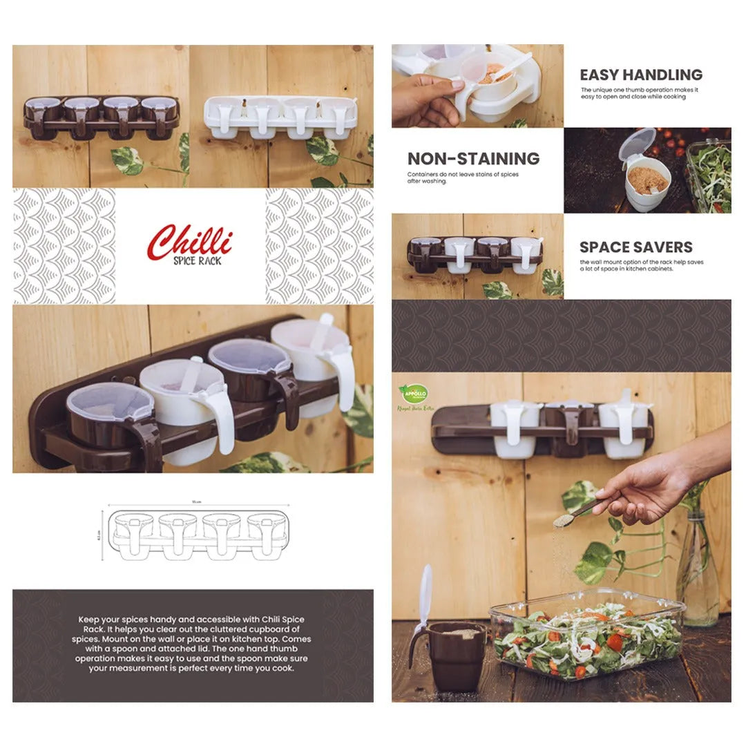 - 1 × 4 In 1 Beautiful Chilli Spice Rack with Spoons and Lids