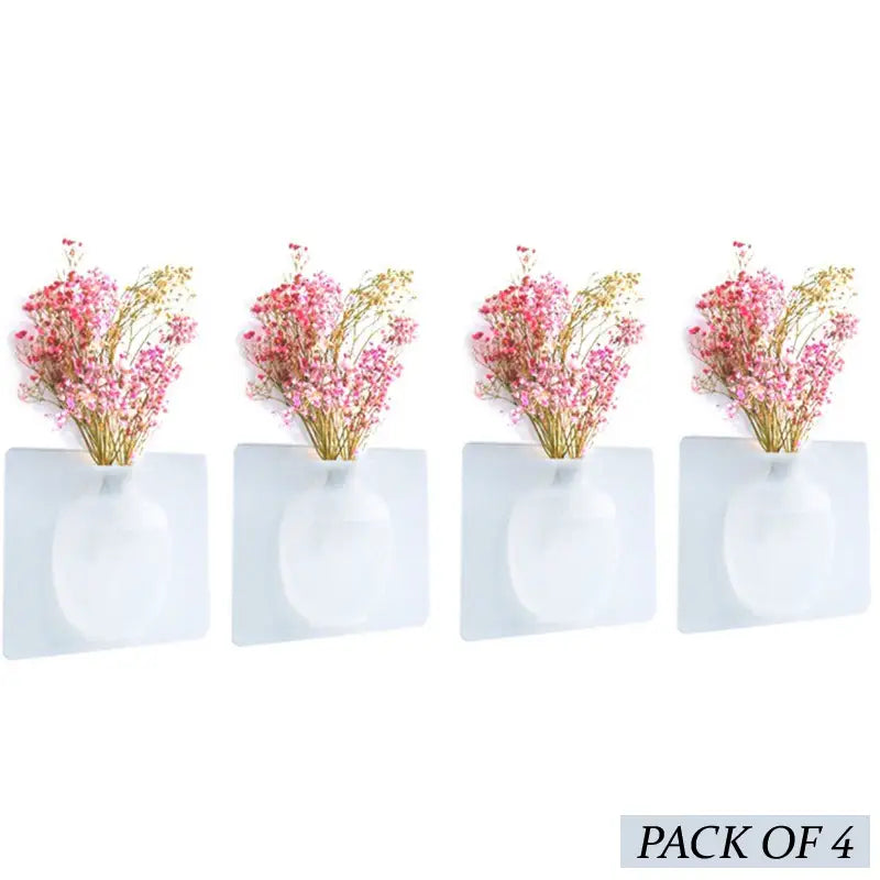 4 PCs Sticky Wall Mounted Plant Holder Silicone Vase Modern Decor Random Color Reusable No Adhesive