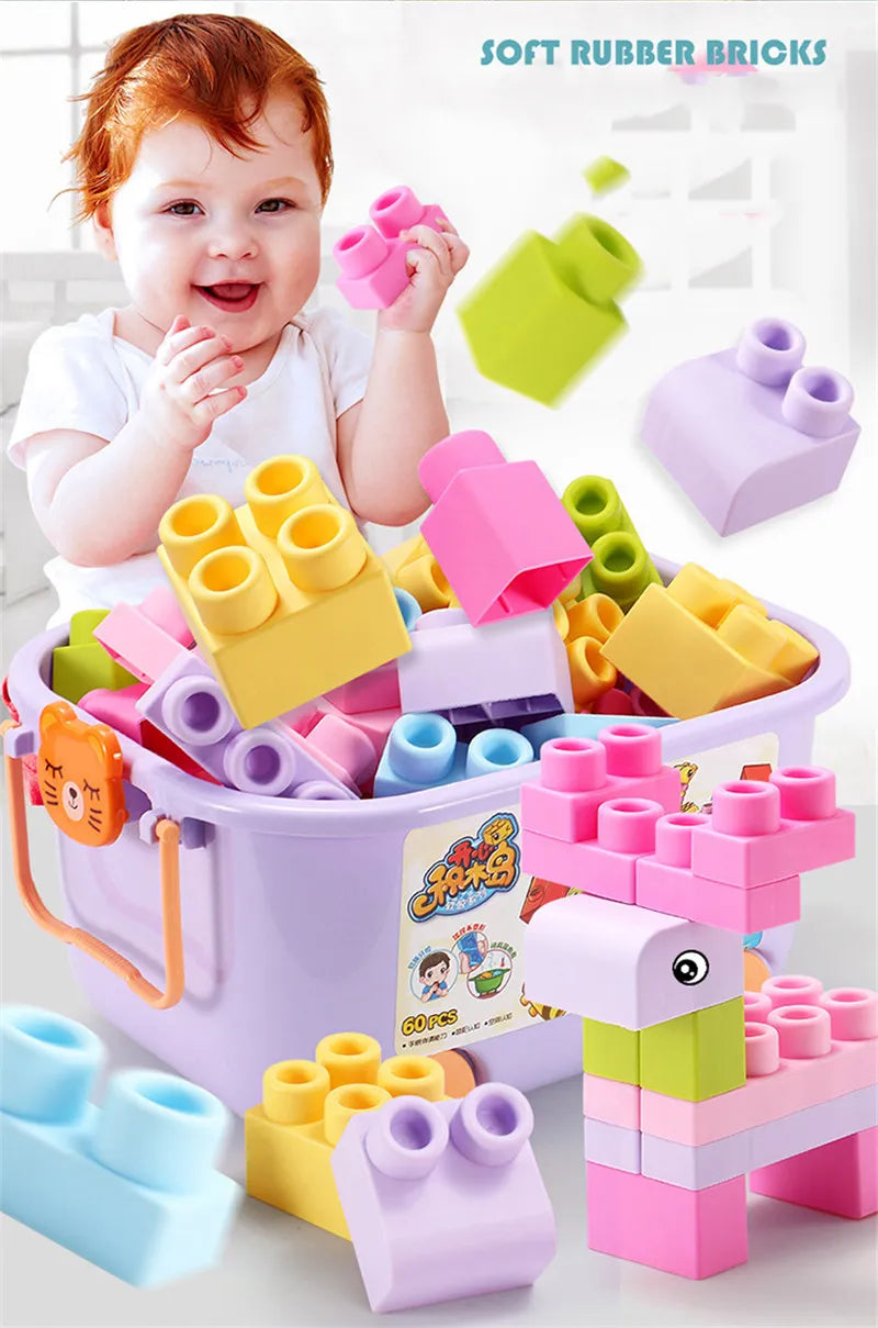 40-Piece Baby Soft Rubber Building Blocks Large Particle Bricks Teether Safe DIY Stacking Toy