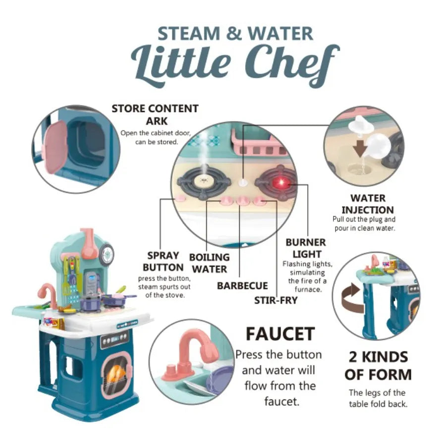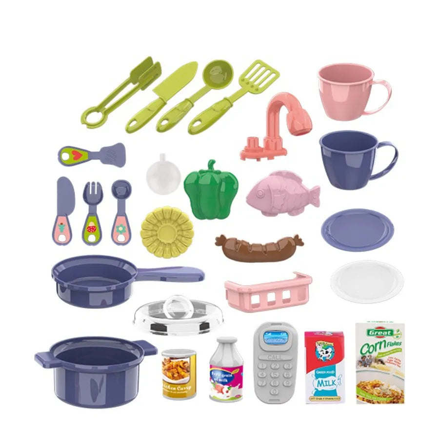 42 Pcs Steam and Water Cooking Kitchen Set for Kids with Music and Lights