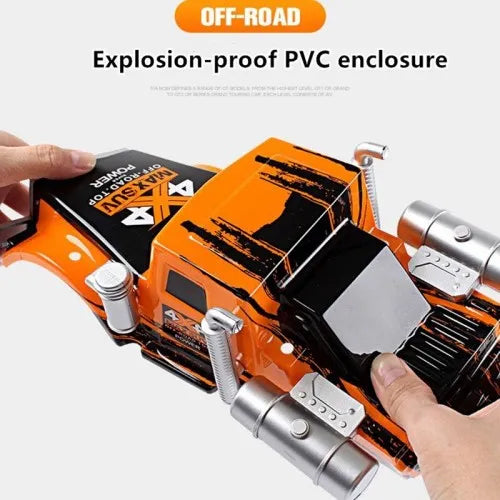 Unleash the thrill of off-road adventures with the 4x4 Max SUV RC Speed Off-Road Stunt Car, a dynamic remote control toy designed for action-packed fun. This 31.5cm black and orange car features a crash-resistant PVC shell, vibrant lights, and music for an exciting play experience. With powerful off-road performance, vacuum tires, and 2.4G high-frequency control, it delivers seamless operation up to 50 meters. Perfect for kids and enthusiasts, this rechargeable stunt car offers dancing swings, standing driving, and robust durability for endless entertainment.