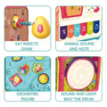 6 Interactive Play Modes: Shape sorting, gear rotation, drumming, worm-catching, piano, and melodies.