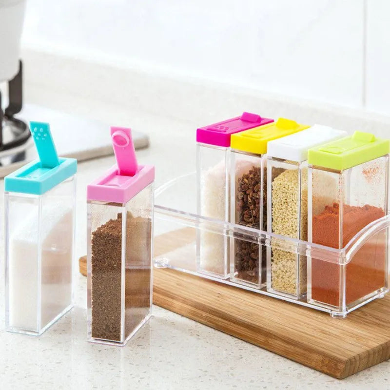 6 Piece Transparent Press-Type Seasoning Box Set with Dual Outlet Holes