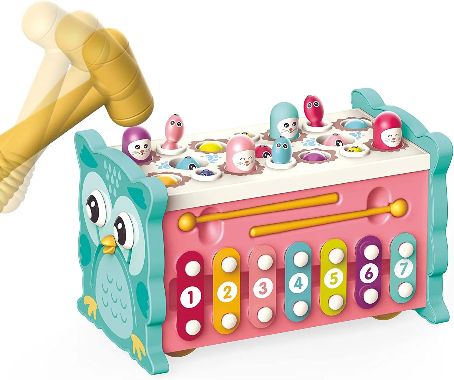 8-in-1 Design: Hammer, Xylophone, Fishing, Shapes, Clock, Pull-Along, Fidget