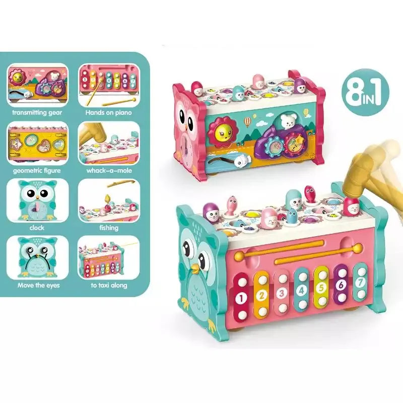 8-in-1 Educational Activity Box Xylophone Hammer Whack A Mole Clock Fishing Pull Along Fidget Sensory Toy