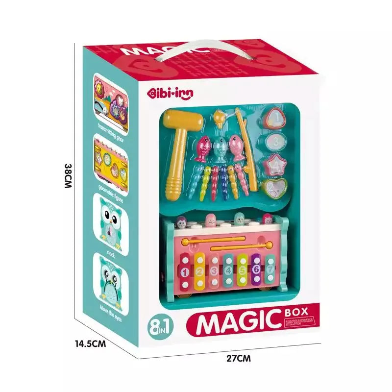 Spark early learning with the 8-in-1 Educational Activity Box, a multi-functional sensory toy designed for babies and toddlers aged 0–7 years. This all-in-one developmental playset includes hammering whack-a-mole, xylophone, fishing game, shape sorting, pull-along feature, clock learning, and fidget elements to boost fine motor skills, hand-eye coordination, and cognitive growth. Crafted from high-quality, child-safe plastic with soft, vibrant colors, it meets EN71 safety standards and is built to withstand active play. Lightweight at 0.4 kg and made in China, this imported, brand-new activity center is perfect for home, preschool, or therapy settings in Pakistan. Keep little hands busy and minds engaged with endless interactive fun.