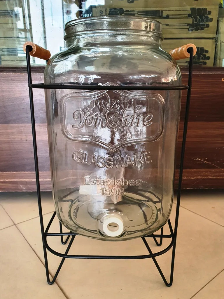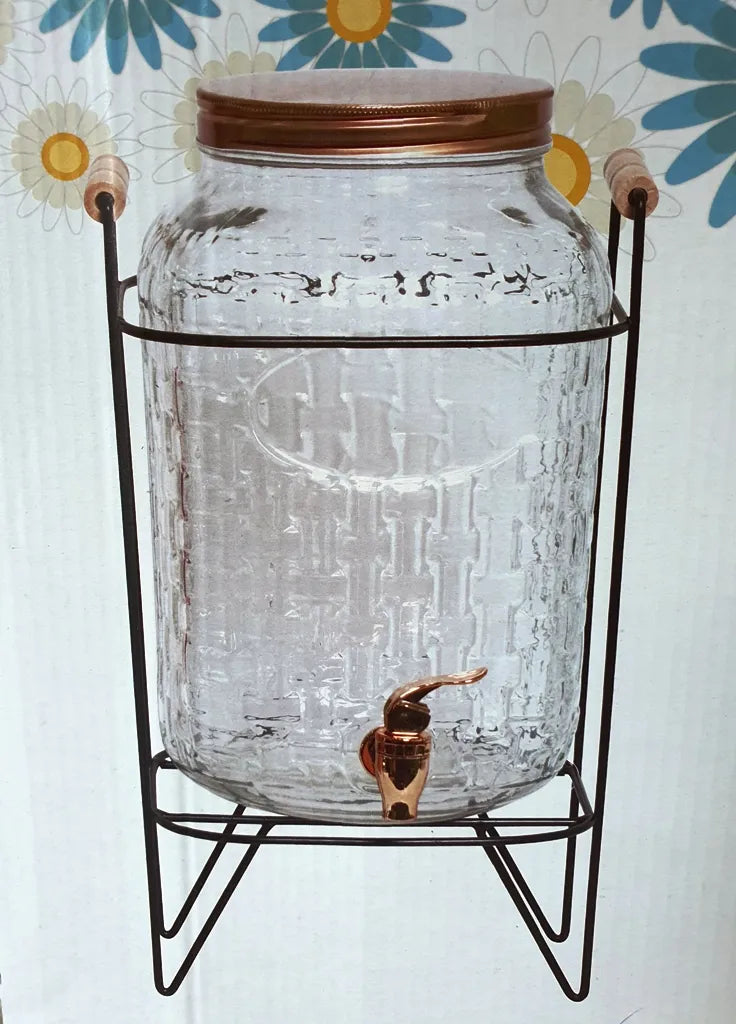 8L Glass Beverage Dispenser with Iron Stand and Leak-Free Spigot