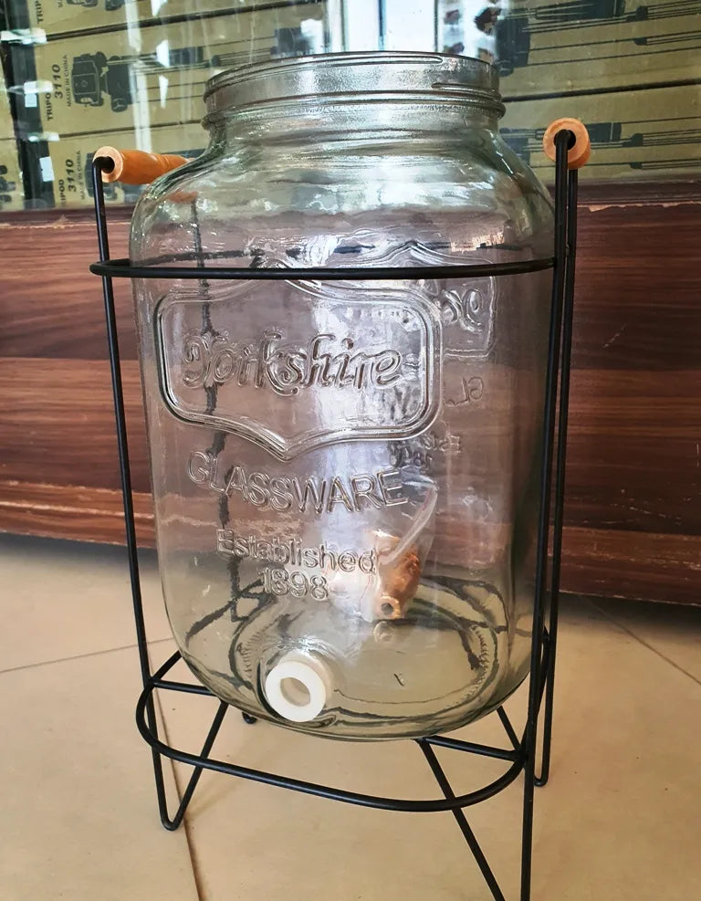 1 x 8L Glass Beverage Dispenser with Spigot and Tin Lid
