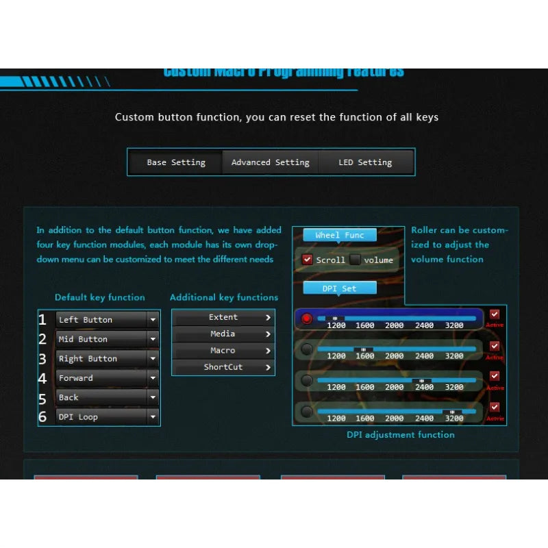 Programmable Controls: 6 buttons for shortcuts and macros.