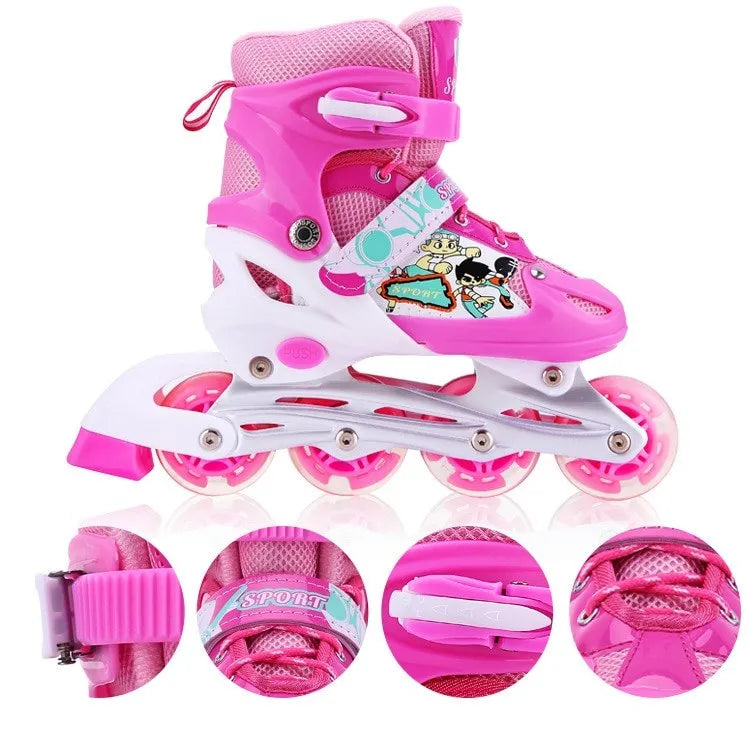Transform your skating experience with this comprehensive adjustable roller skating shoes set that includes essential safety gear for maximum protection and fun. These innovative skate shoes feature an adjustable design that grows with you, making them perfect for both beginners and experienced skaters.