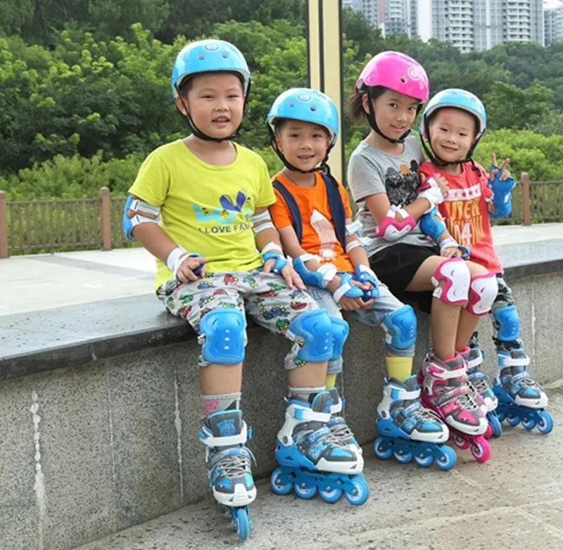Adjustable Roller Skating Shoes Complete Set with Safety Helmet and Knee Protector Gear Kit for Kids and Adults