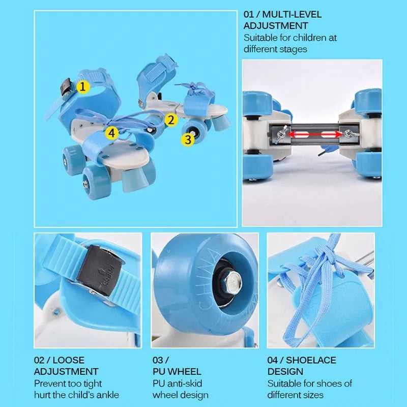 Adjustable Size Children Roller Skates Double Row 4 Wheels Skating Shoes | Easy to Wear, Front Stopping Block, Available in Multiple Colors