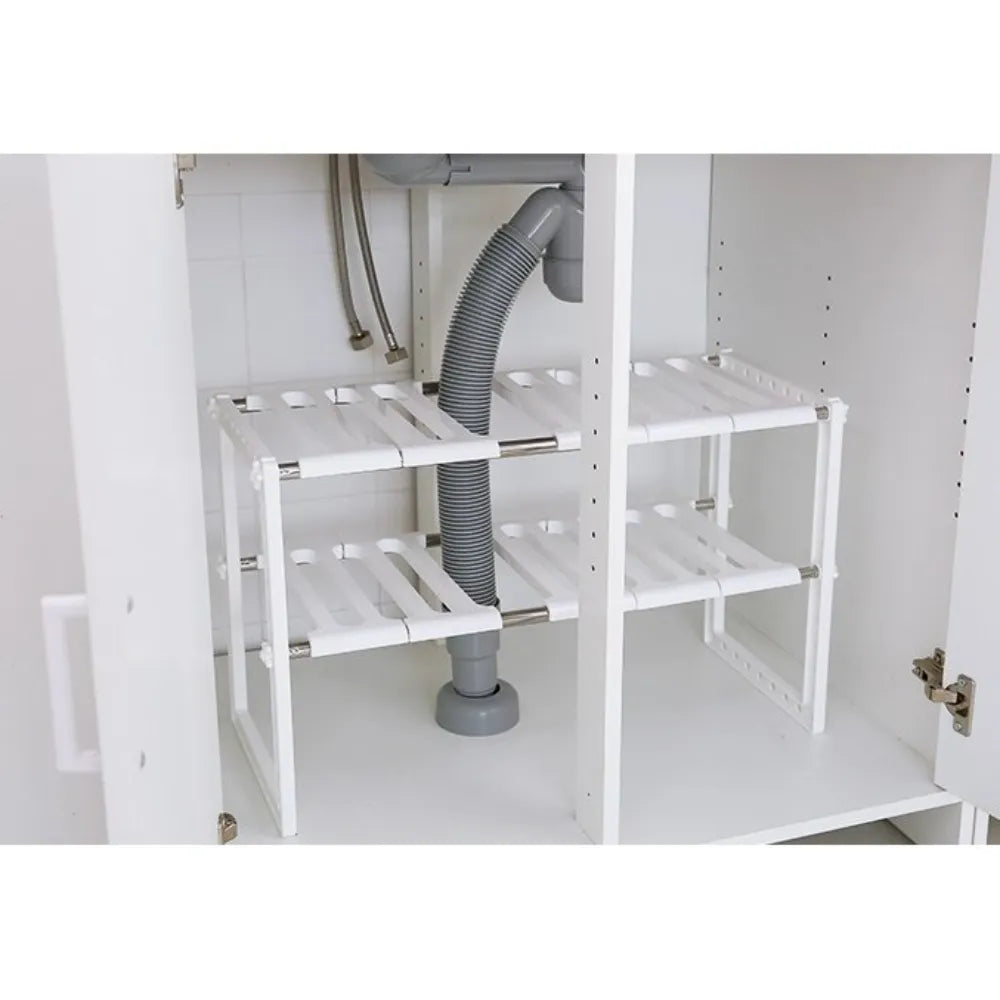 Adjustable Under Sink Kitchen Storage Rack Organizer Space Saver White