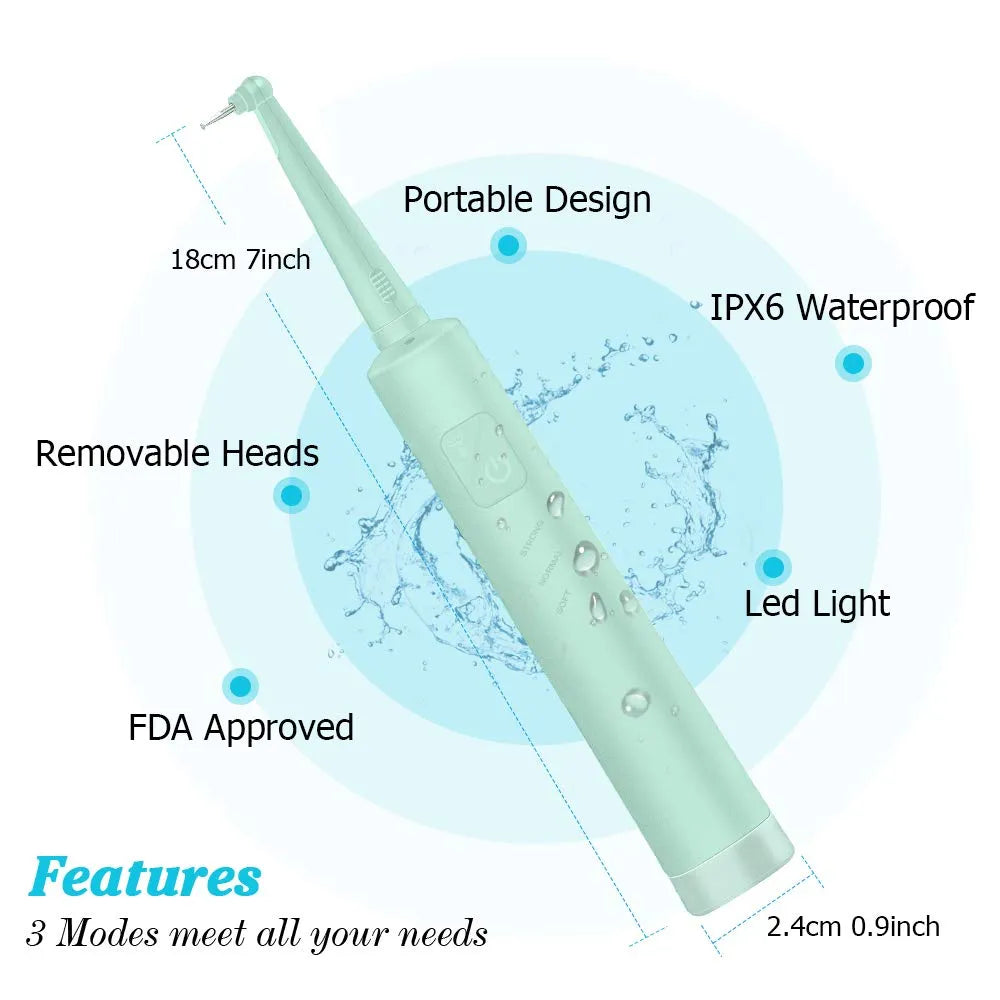 3 Intensity Modes: Soft for sensitive teeth, Strong for tough buildup.
