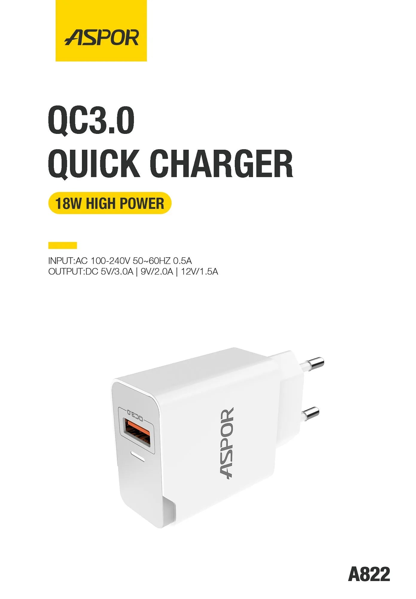 Aspor A822 PD+QC3.0 18W Fast Charger with Micro USB Cable White