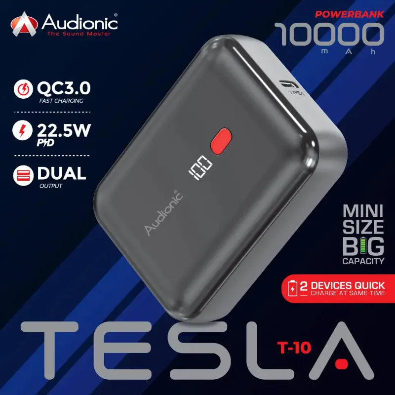 The Audionic Tesla T-10 Power Bank is your go-to solution for fast, reliable, and portable charging, keeping you connected wherever you are.
