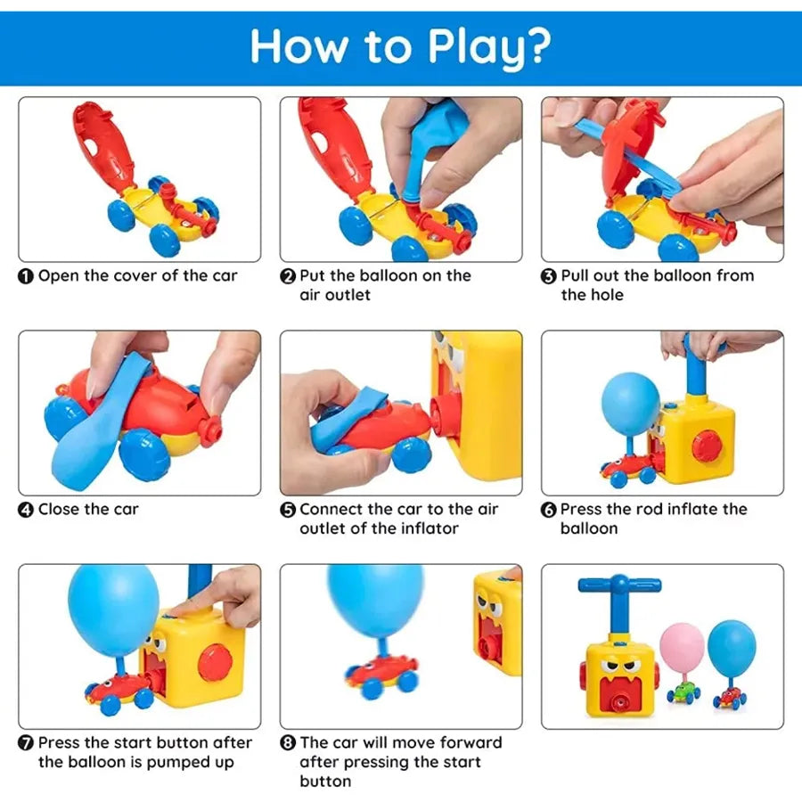 Balloon Powered Pumping Car Toy Set for Toddlers