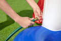 Water Sprayer Fun: Lifeguard tower sprays water via garden hose connection.