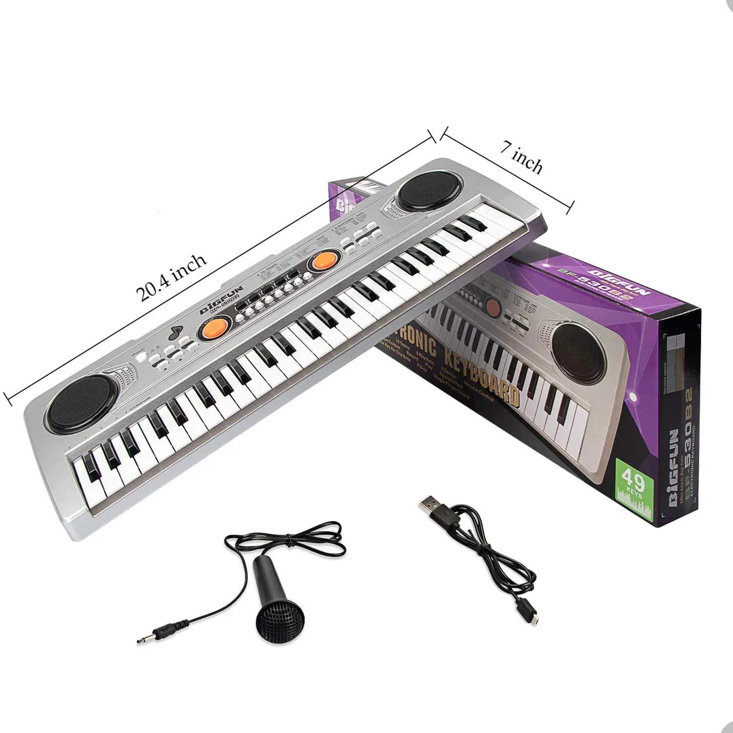 Big Fun 49 Keys Electronic Piano Keyboard for Kids with Microphone and USB