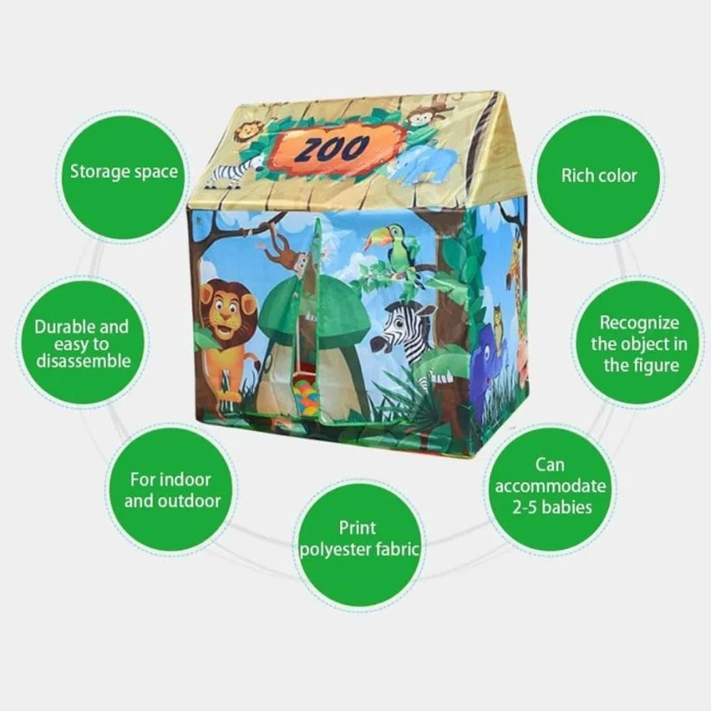 Zoo-Themed Design: Bright and colorful forest tent inspires imaginative play for kids.