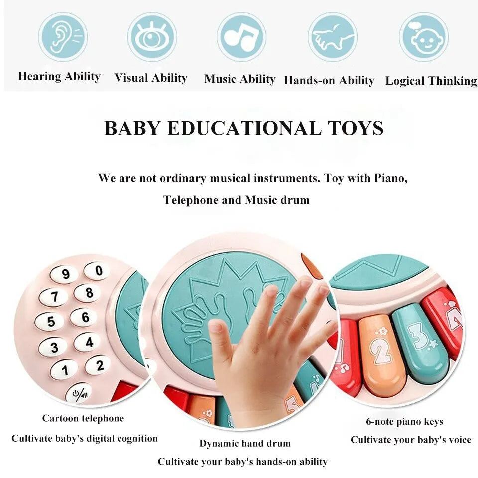 Children Music Telephone Multifunctional Piano and Hand Drum Baby Educational Toy