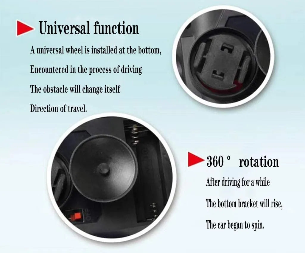 360° Rotating Universal Wheel: Allows the car to spin freely in all directions when the chassis bracket is raised, ensuring smooth and dynamic movement.