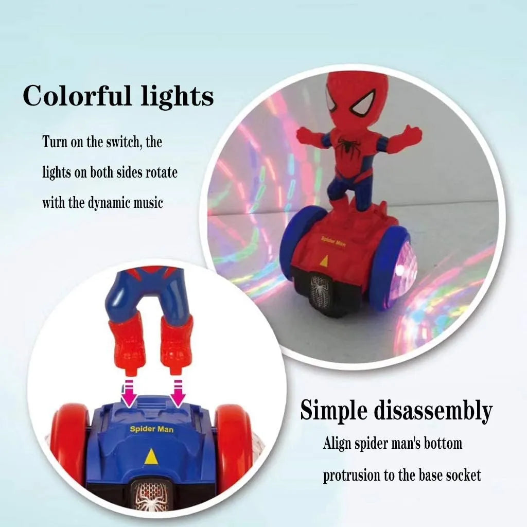 Children's Electric Spiderman Toy Balance Scooter with 360° Rotation and Light Music
