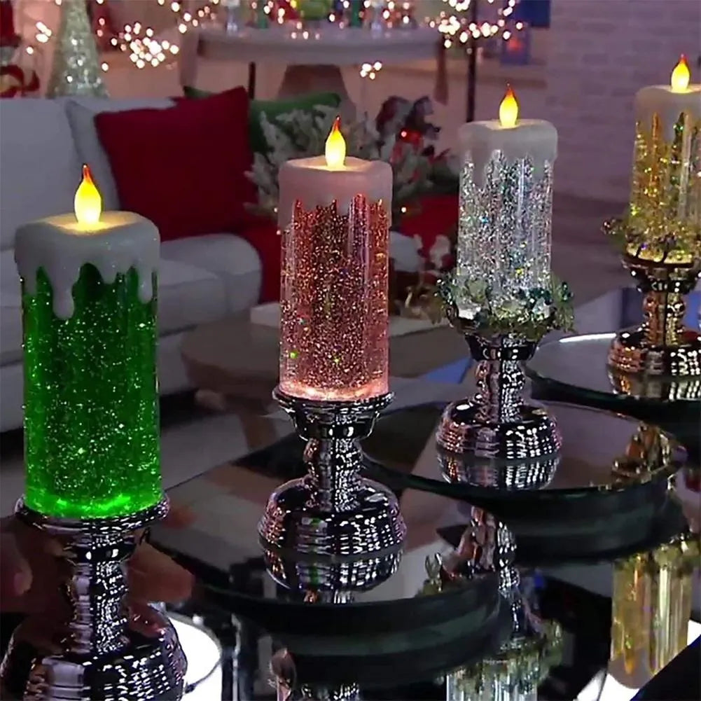 Color Changing LED Flameless Votive Candle with Glitter Creative Water Effect Lamp