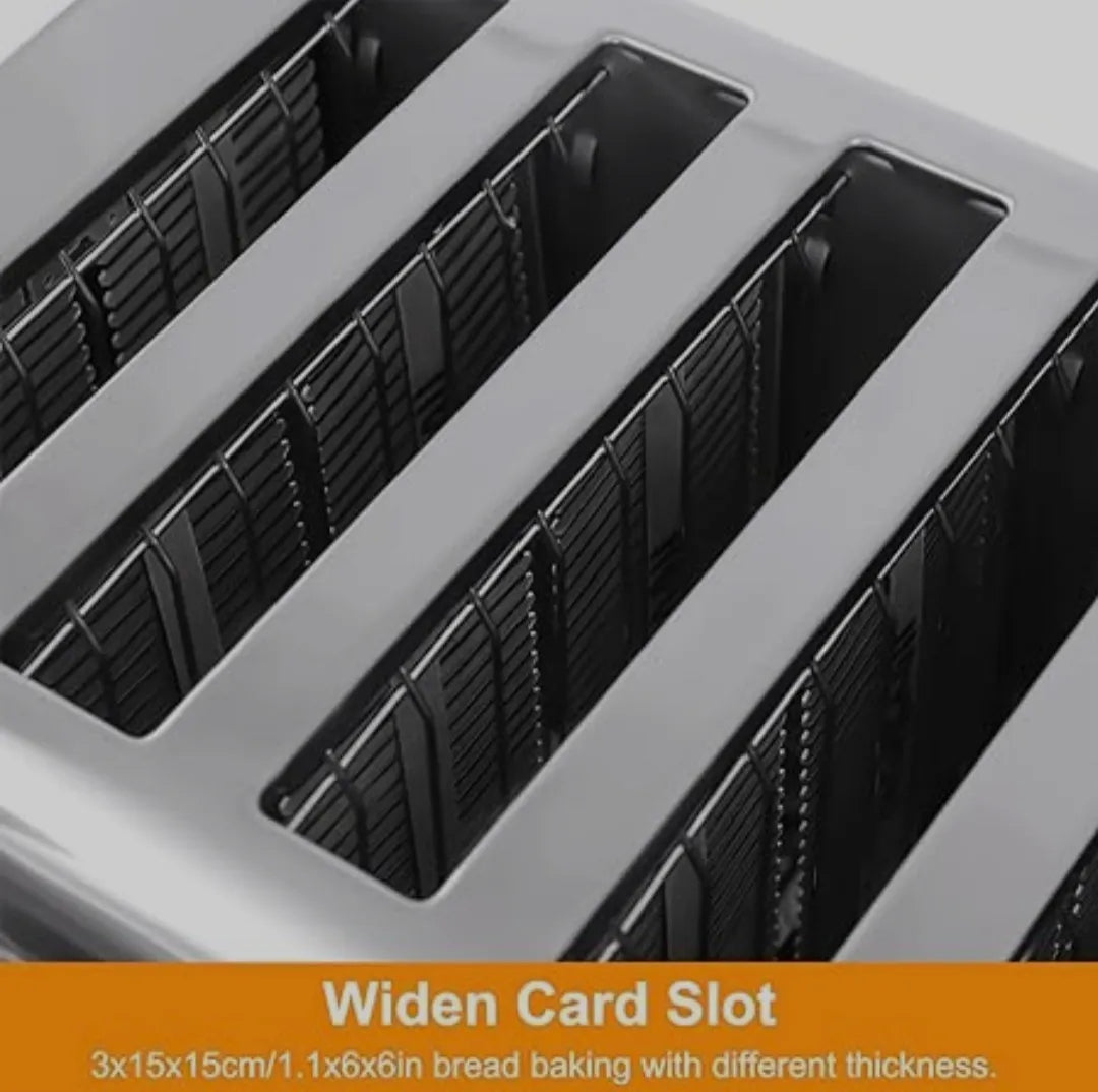 Featuring 6 wide slots, it allows you to toast multiple slices at once, saving time during busy hours. The adjustable temperature and timer control ensure perfectly toasted bread every time light, medium, or crispy, exactly the way you like it.