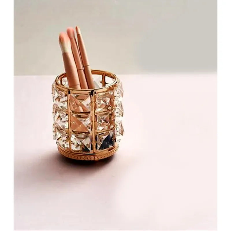 Elevate your home organization and decor with this elegant Crystal Vase Multi-Purpose Rotating Storage Basket. Combining modern simplicity with practical functionality, this piece features a sparkling crystal body paired with a sturdy metal frame in gold or silver finish. Measuring approximately 8 x 9.5 cm, its compact size makes it ideal for desktops, dressing tables, bathroom counters, kitchen shelves, or wardrobes. The 360-degree rotating base with three smooth metal balls allows easy access to contents without moving the entire container. Perfect for storing and organizing makeup brushes, cosmetics, lipsticks, jewelry, toothbrushes, pens, pencils, small stationery, cotton swabs, hair accessories, or even serving as a stylish candle holder. Easy to clean and maintain, this versatile organizer adds a touch of sophistication to any space while keeping everyday items neatly arranged and within reach.