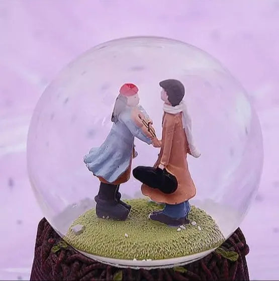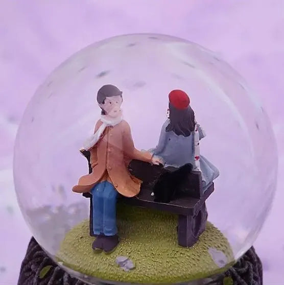 Cute Couple Crystal Ball Music Box with Lights for Home Decor and Gifting