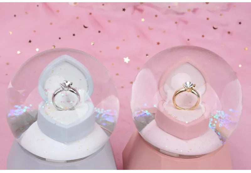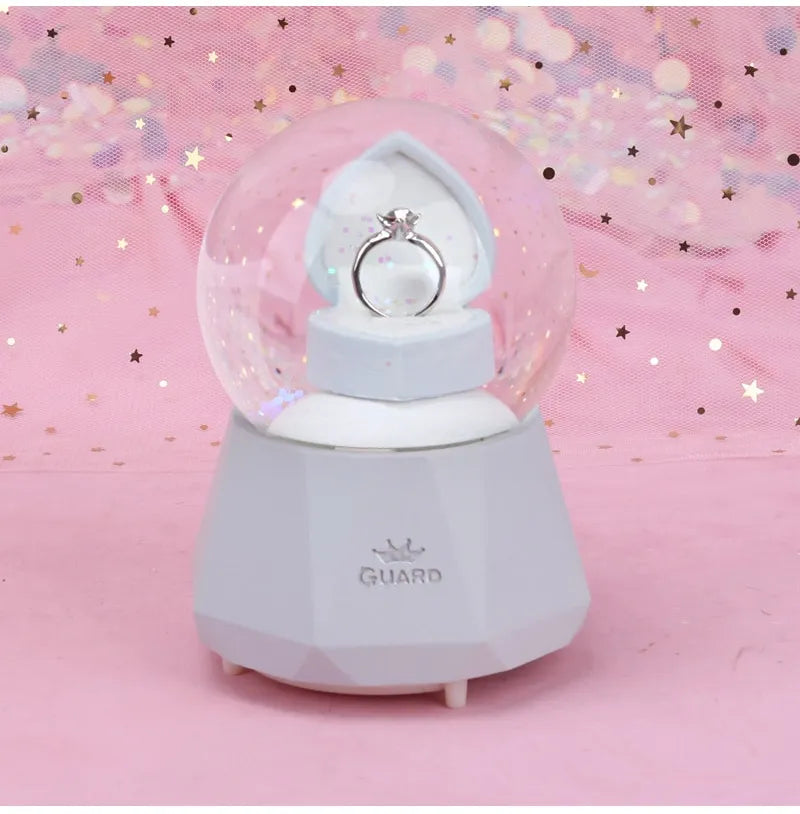 Diamond Ring Snow Globe Crystal Ball Rotating Music Box for Home Decor