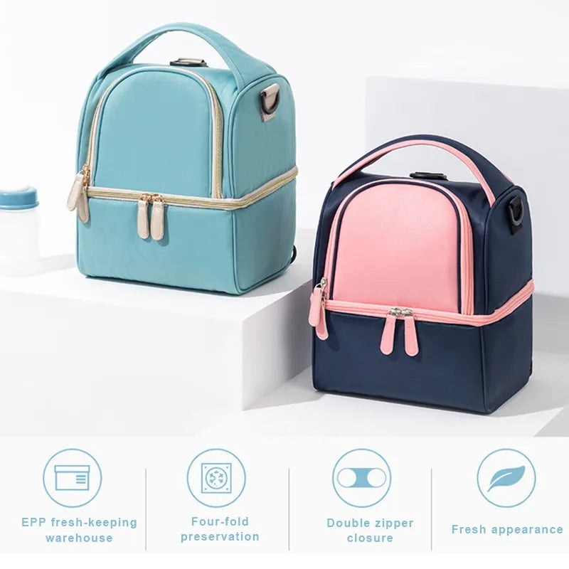 This Double Layer Cooler Bag is the perfect companion for keeping your food and breast milk fresh while maintaining convenience and style, whether you're heading to a picnic, work, or a family outing.