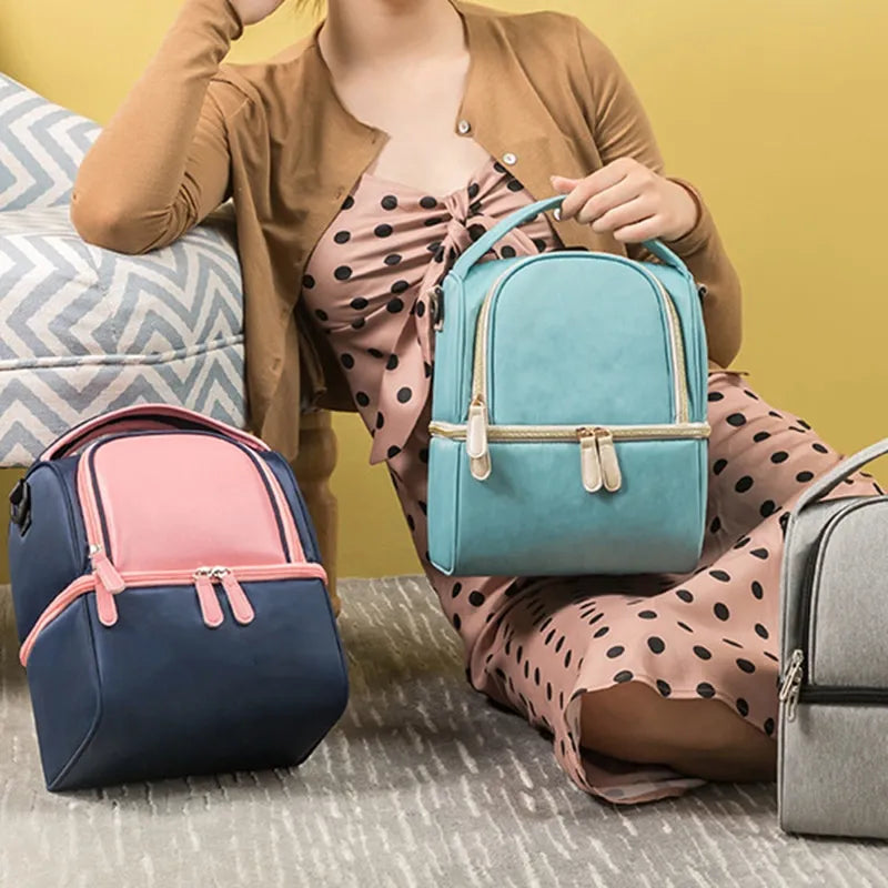 Double Layer Cooler Bag for Breast Milk Storage and Picnic Food Carrier 22x16x25cm