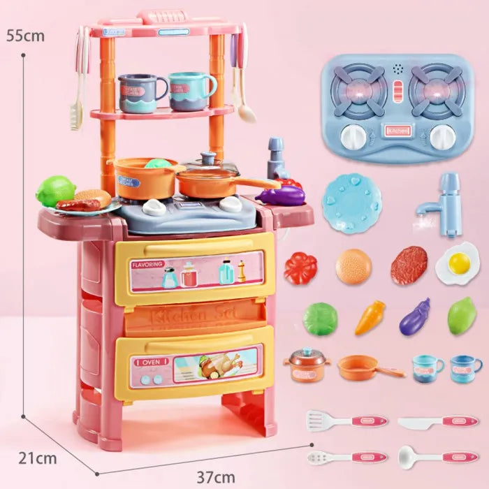 Dream Kitchen Set 55cm Height with 20 Accessories Mini Stove Pretend Play with Sounds and Lights for Kids 3+