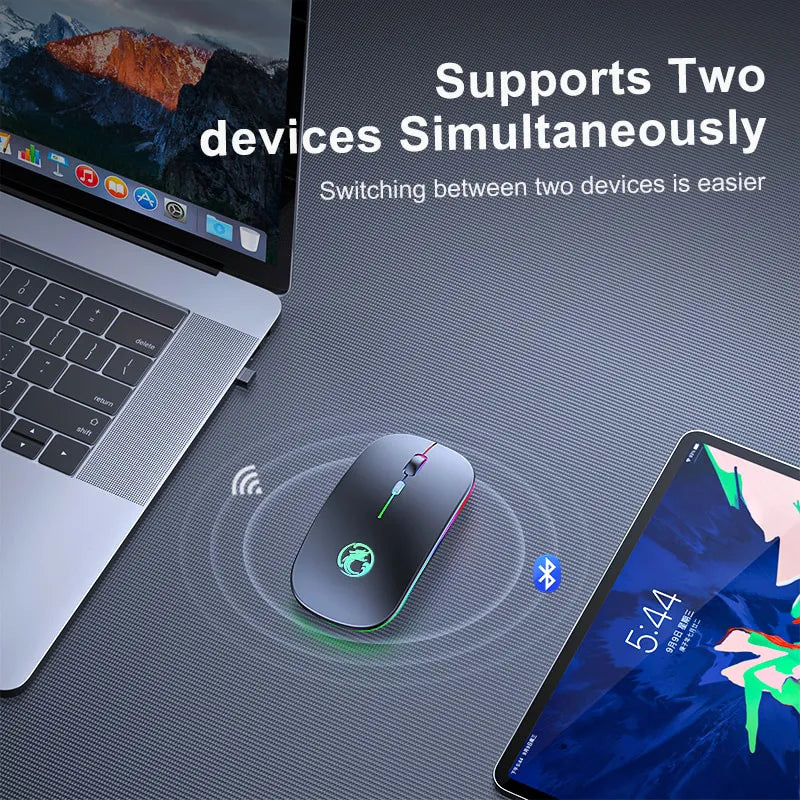 E-1300 Rechargeable 2.4GHz Wireless Mouse with Bluetooth 5.1 and RGB Lighting