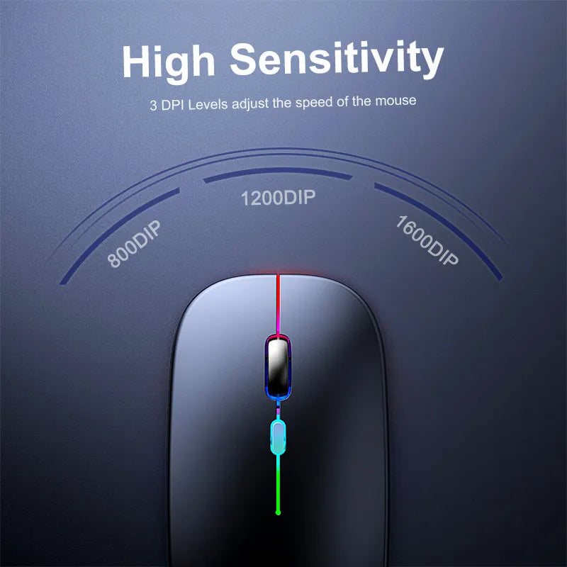Enhance your computing experience with the E-1300 Rechargeable 2.4GHz Dual Mode Luminous Wireless Mouse, designed for versatility, comfort, and performance. This sleek mouse supports both 2.4GHz wireless transmission and Bluetooth 5.1 connectivity, offering seamless compatibility with a wide range of devices, including Windows XP, Vista, Win 7/8/10, macOS, laptops, desktops, smart TVs, and tablets (adapter required for some devices). With three adjustable DPI settings (800/1200/1600), it provides precise control for gaming, work, or casual browsing.