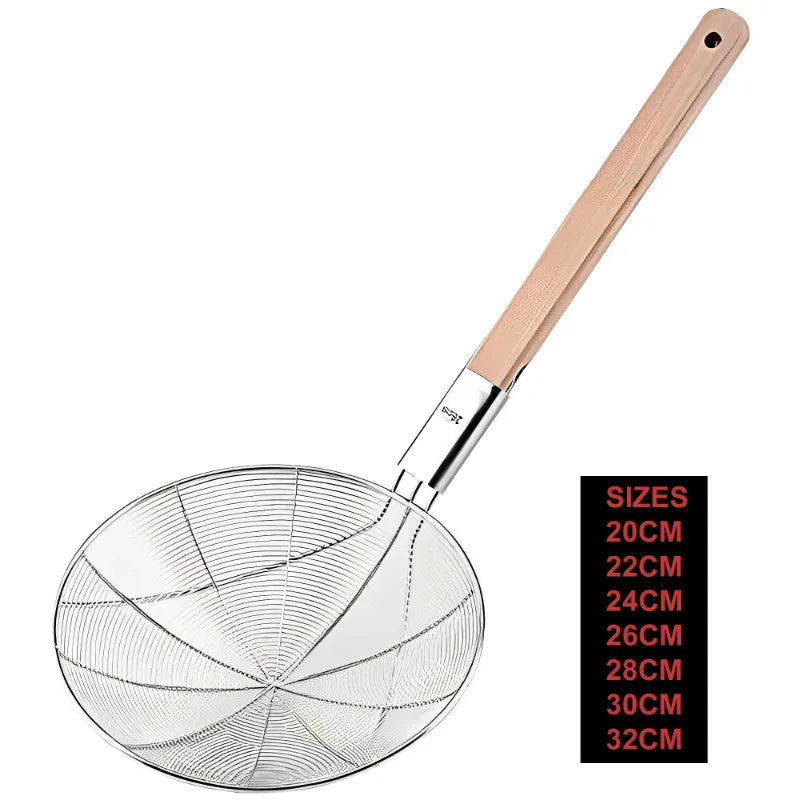 Eco Friendly Wooden Handle Stainless Steel Frying Oil Strainer Spider Skimmer