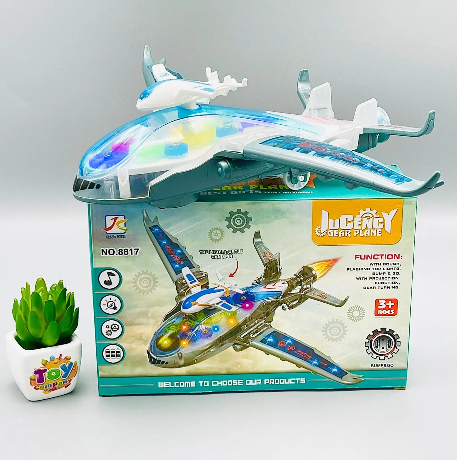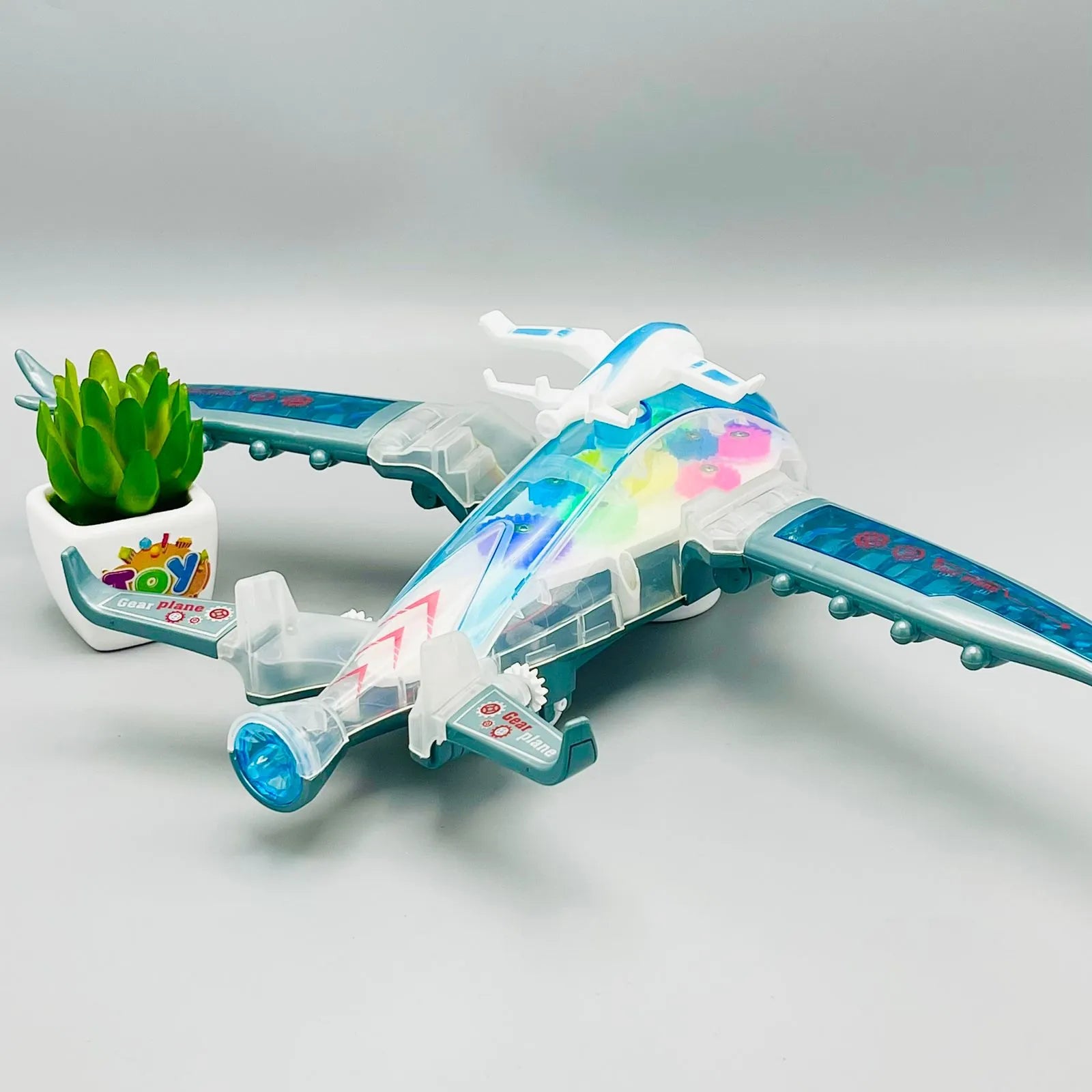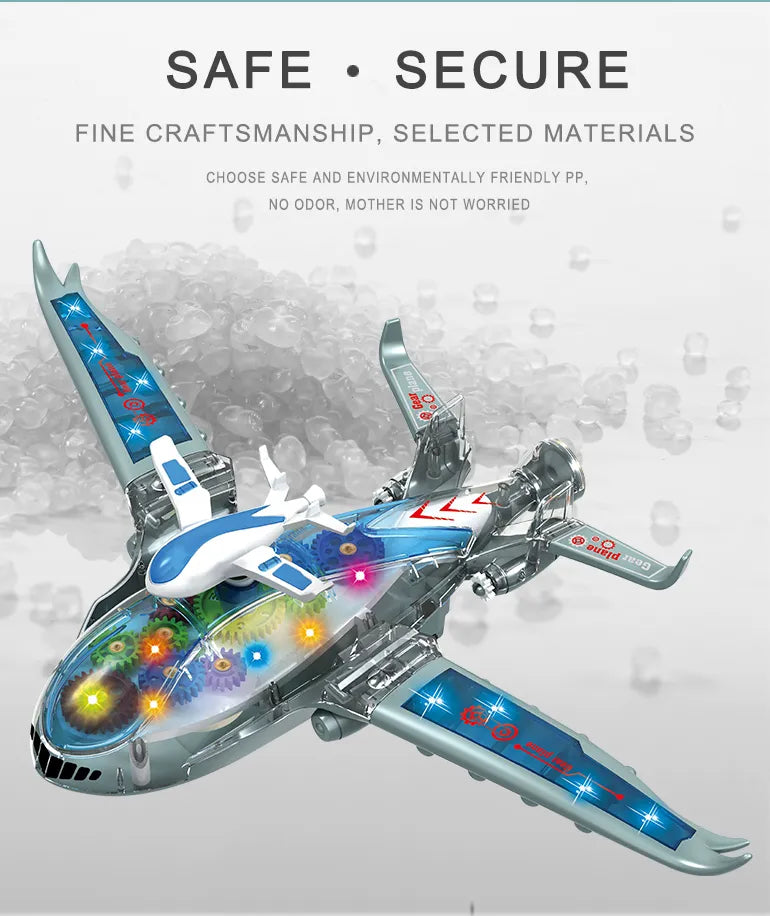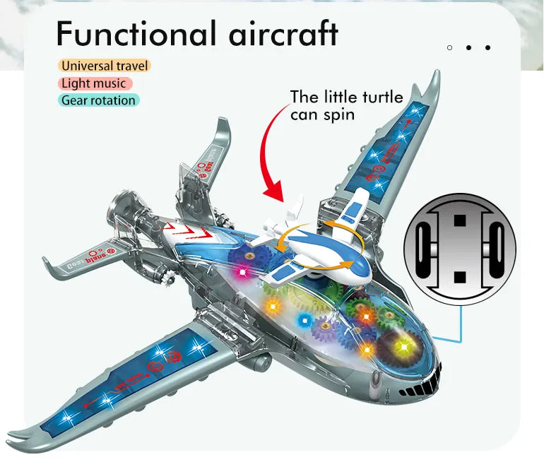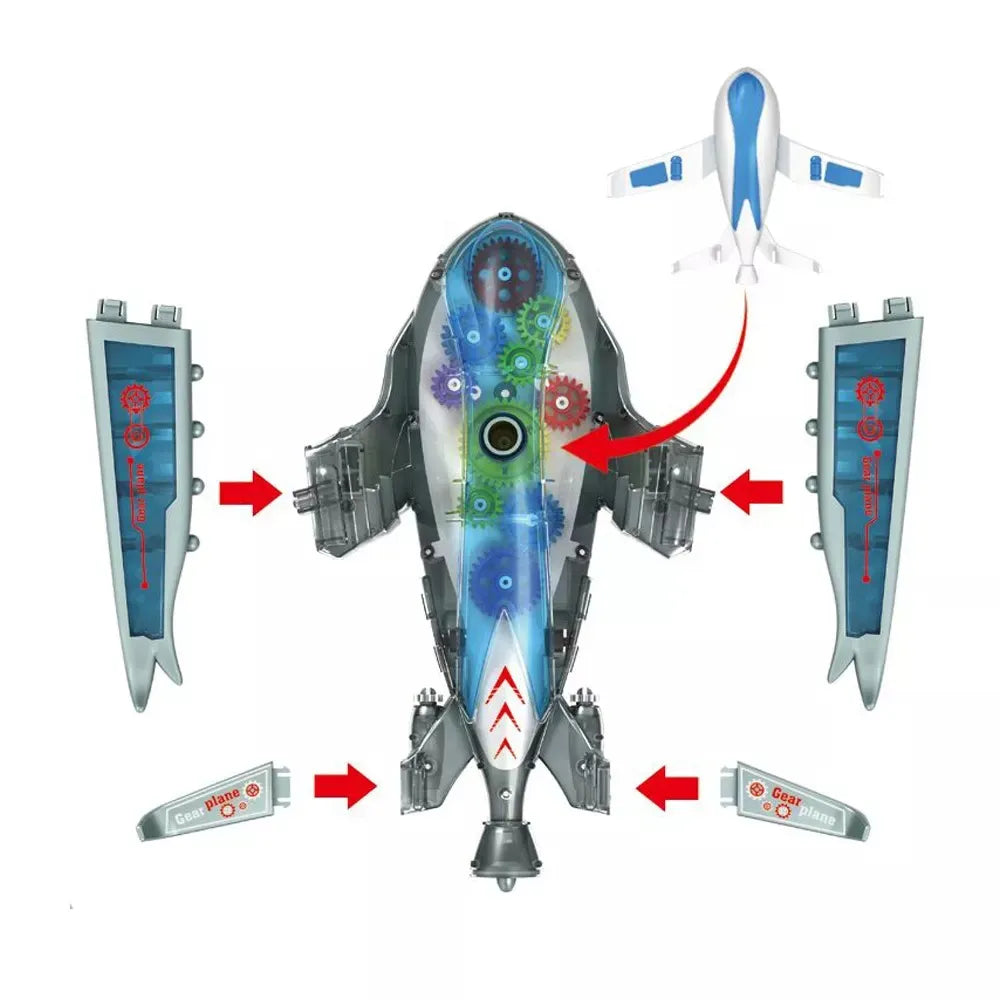 Electric Airplane Toy with Lights Music and Gear Rotation for Kids